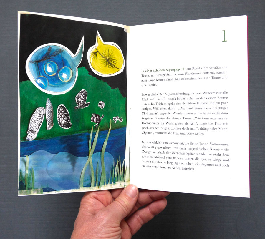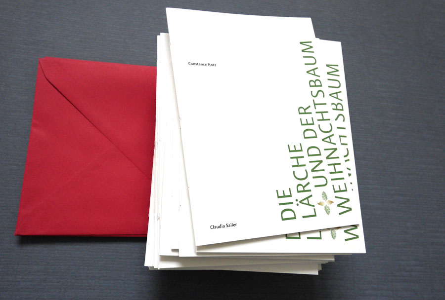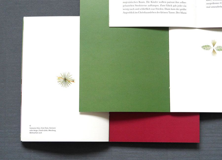 Eine Geschichte zum Fest: Illustriert und gestaltet von Claudia Sailer. Von den Macherinnen liebevoll von Hand gebunden. Das edel gedruckte Büchlein machte 2016 als Kundengeschenk von sailer design und Constance Hotz, Feine Texte, die Runde. Und wurde unter manchem Weihnachtsbaum vorgelesen.